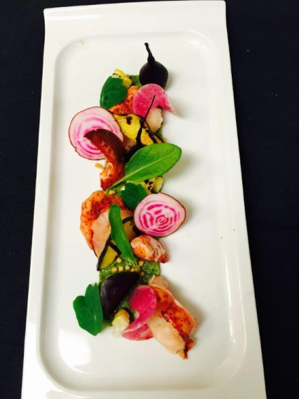 2. Arrange lobster, beets and grilled acorn squash nicely on top of the green goddess.